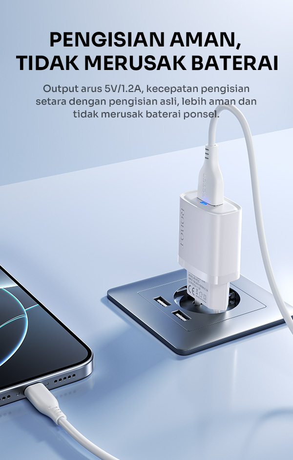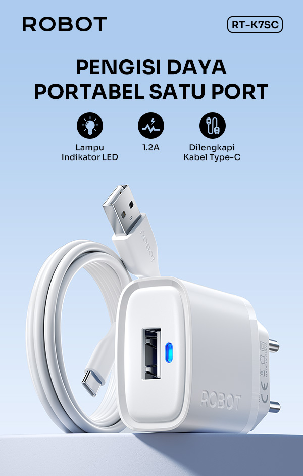 - Robot Charger RT-K7SC 1.2A, pengisian stabil dan aman untuk smartphone.