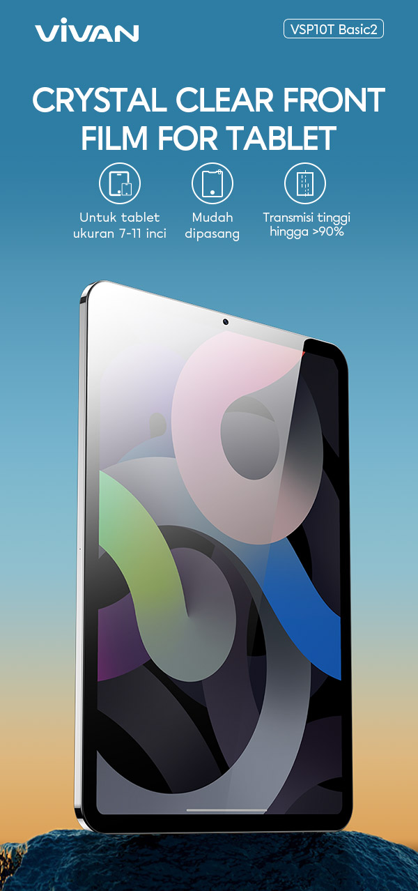 - VIVAN VSP10T Basic2 Crystal Clear hadir dengan bahan hydrogel transparan yang menjaga kejernihan layar tanpa mengurangi kualitas tampilan asli layar tablet atau smartphone.