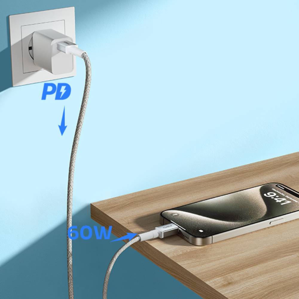 - Lapisan nylon braided kuat dan anti kusut, meningkatkan daya tahan kabel untuk penggunaan jangka panjang.