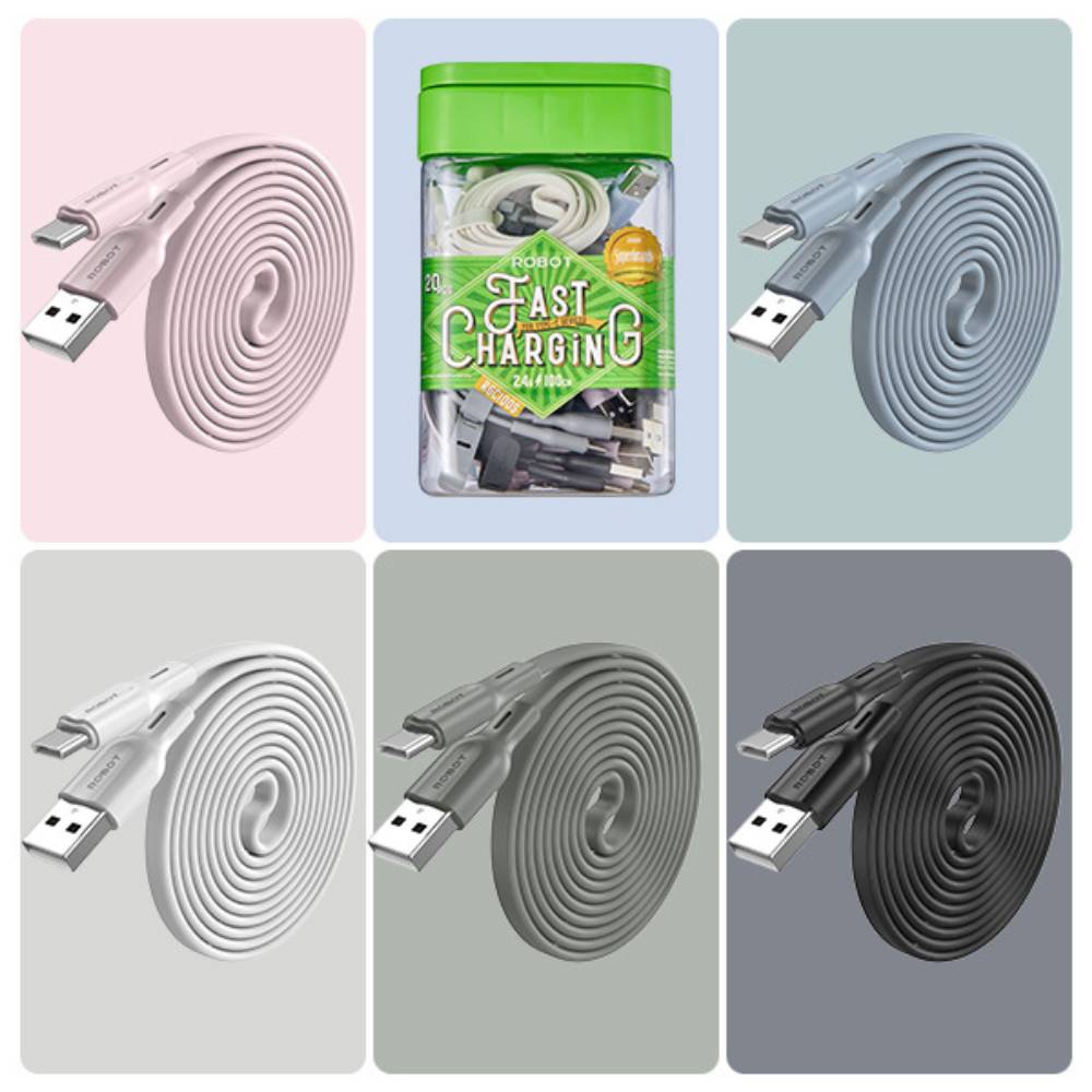 - Kabel Data Robot RGC100S Type-C dengan output arus maksimal 2.4A untuk pengisian cepat dan transfer data yang efisien.