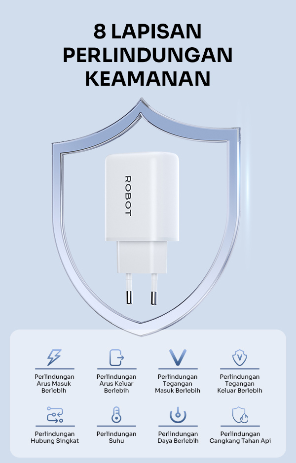 - Dilengkapi 8 lapisan perlindungan keamanan untuk mencegah overheat, overvoltage, dan korsleting saat pengisian.