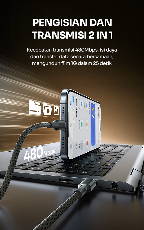 - Mendukung fungsi 2-in-1 pengisian daya cepat sekaligus transfer data dengan stabil dan lancar.