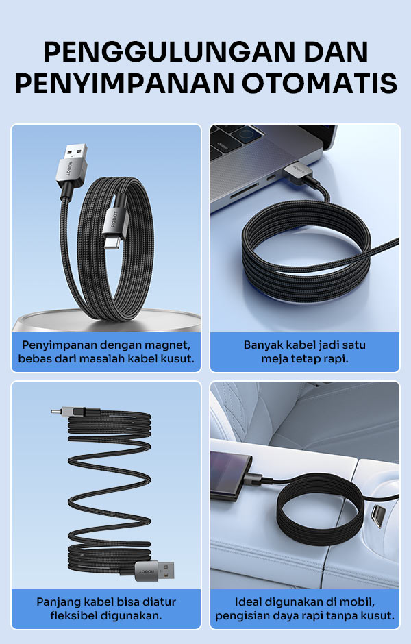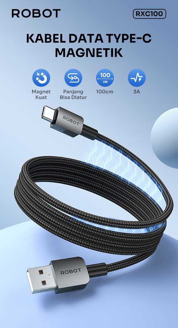 - Kabel Data ROBOT RXC100 Creative Magnetic mendukung pengisian daya hingga 3A untuk proses charging yang lebih cepat dan stabil.