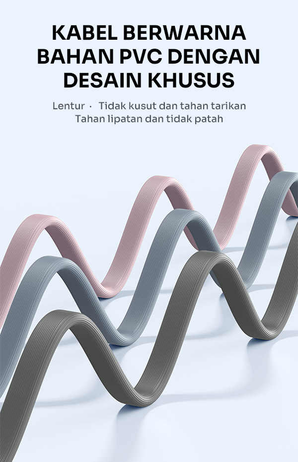 - Material kabel berkualitas tinggi dan fleksibel, tahan lama untuk penggunaan sehari-hari tanpa mudah putus.