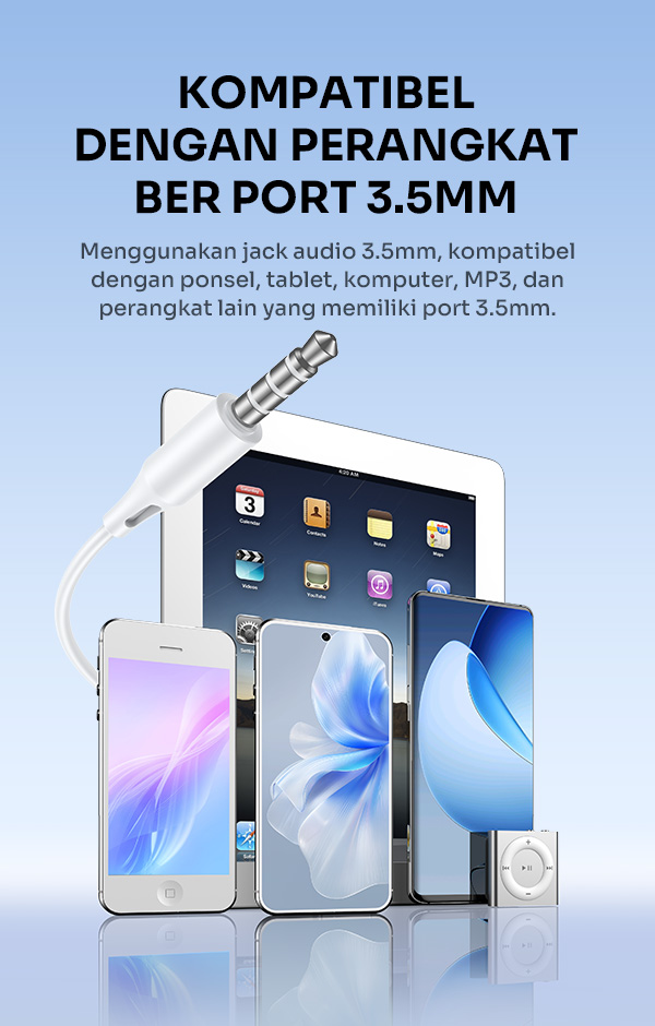 - Kompatibilitas Luas — Cocok untuk semua perangkat dengan jack audio 3.5mm seperti smartphone, laptop, tablet, dan MP3 player.