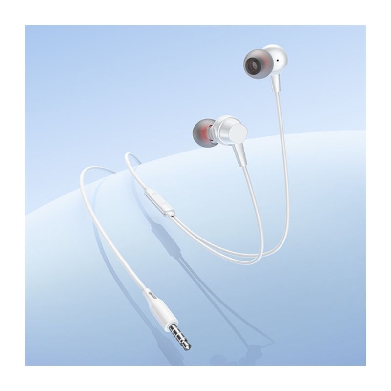 - Desain ringkas dan ergonomis half in-ear, nyaman dipakai lama tanpa rasa sakit.