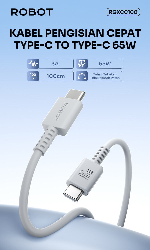 Robot RGXCC100 Kabel Data 3A 65W (Type-C To Type-C) 100CM