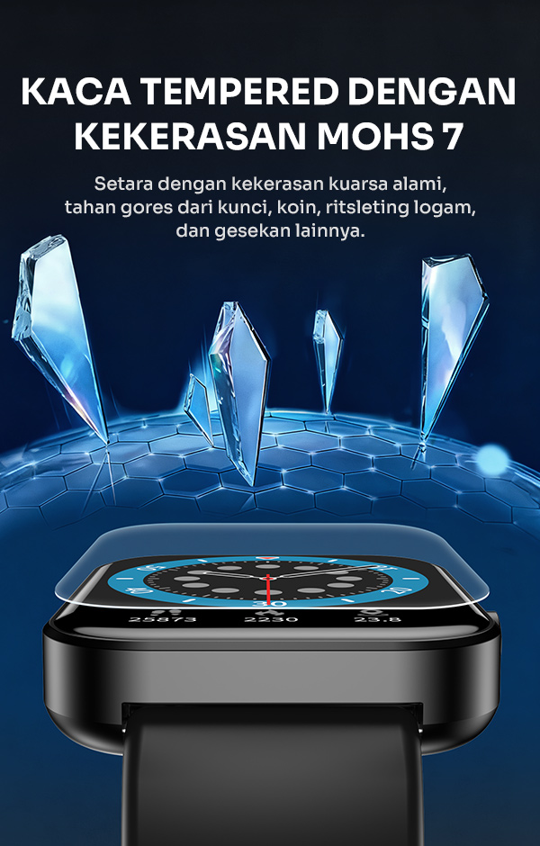 - Memiliki ketahanan air 1ATM sehingga aman digunakan saat terkena percikan air dalam aktivitas sehari-hari.