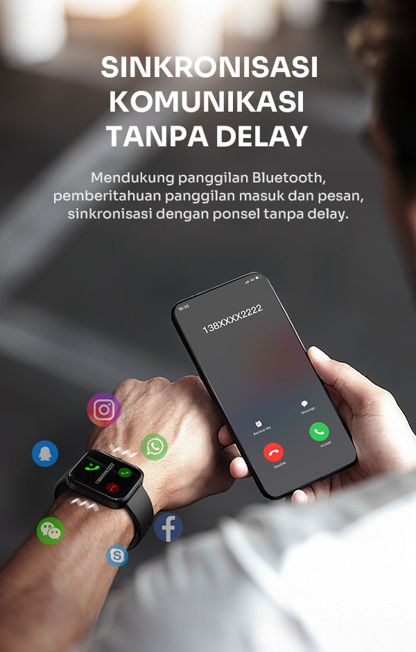 - Fitur notifikasi pintar untuk panggilan, pesan, dan aplikasi sosial langsung di pergelangan tangan.