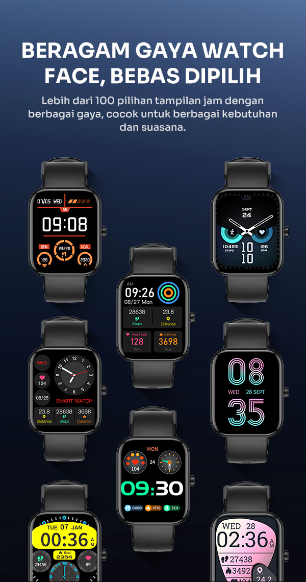 - Mendukung berbagai mode olahraga untuk membantu memantau aktivitas fitness dan gaya hidup sehat.