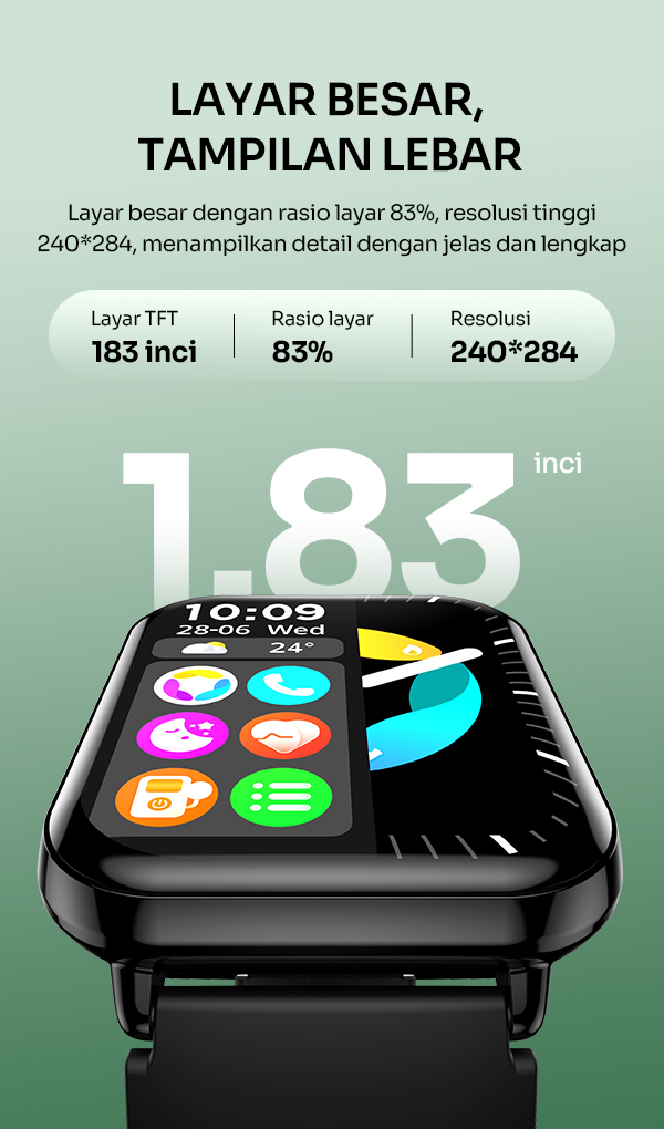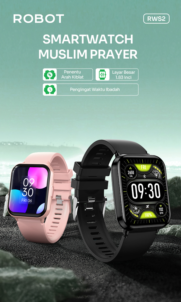 Rp 179.000- Smart Watch ROBOT RWS2 dengan layar IPS 1,83 inci yang luas dan jernih untuk tampilan informasi lebih nyaman.