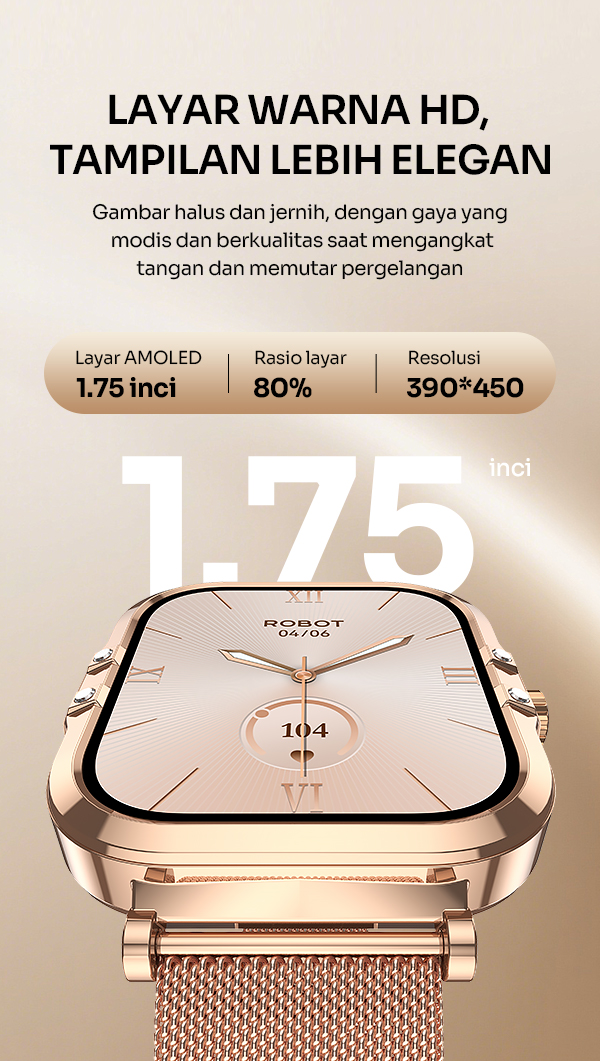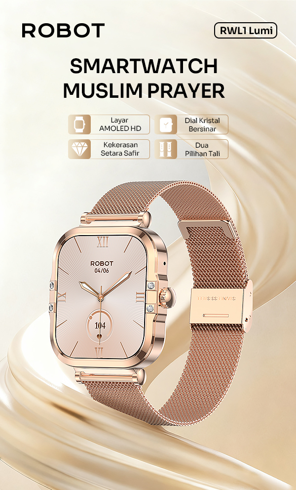- Smart Watch ROBOT RWL1 Lumi dengan layar AMOLED 1,75 inci yang tajam dan warna lebih hidup untuk tampilan premium.