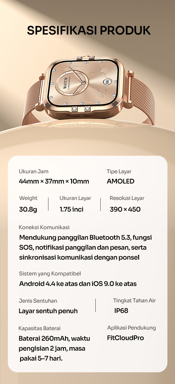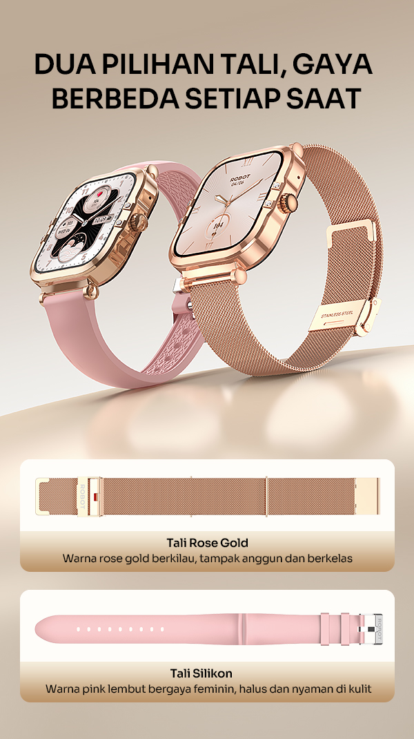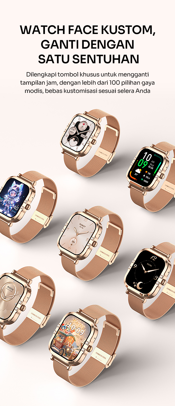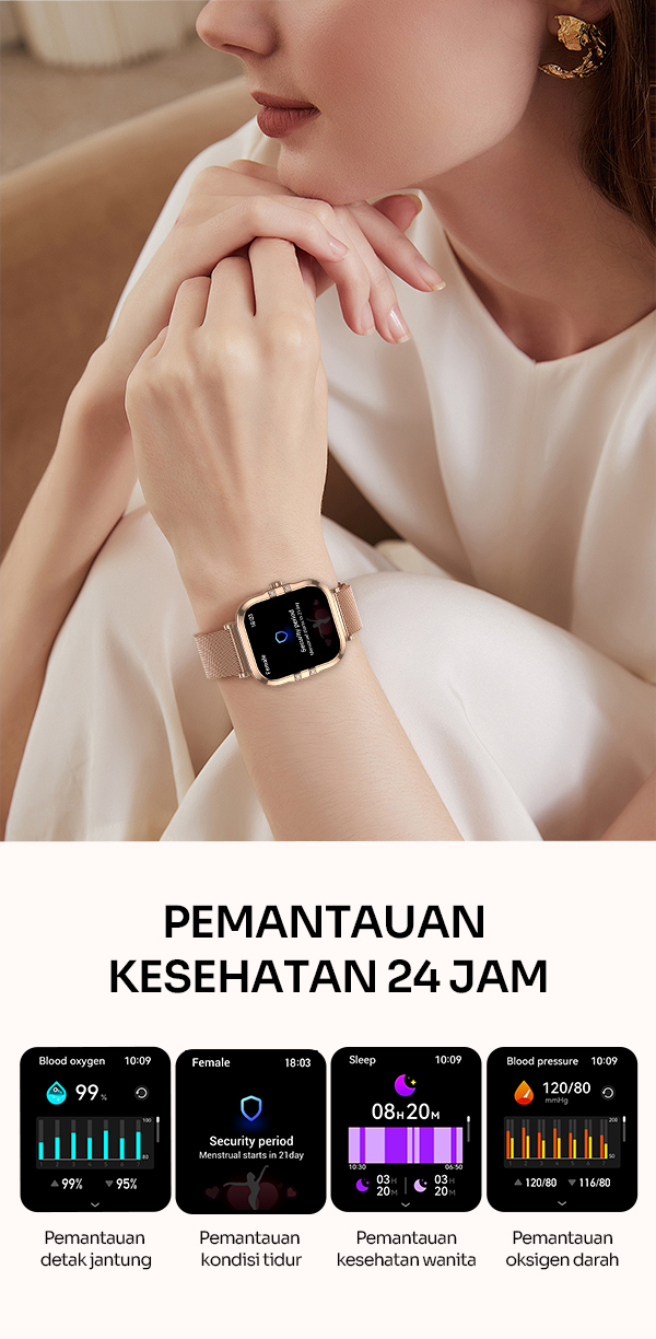 - Desain premium dengan bodi elegan dan strap nyaman dipakai sepanjang hari.