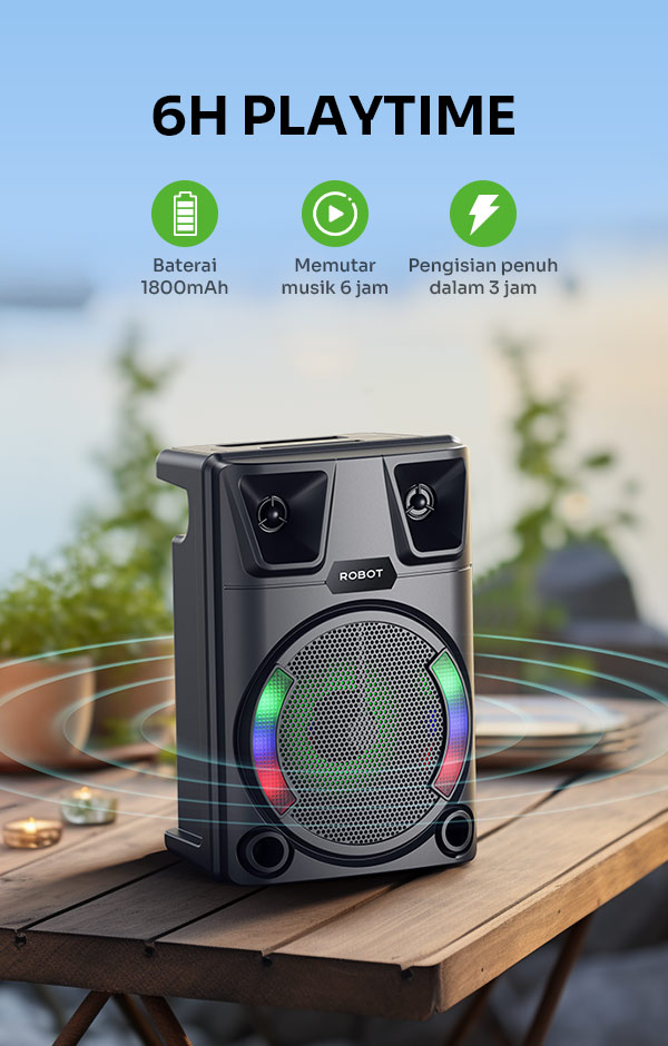 Rp 154.500- ROBOT RB350 Karaoke Speaker dengan dukungan Bluetooth 6.0 untuk koneksi lebih stabil, cepat, dan hemat daya.