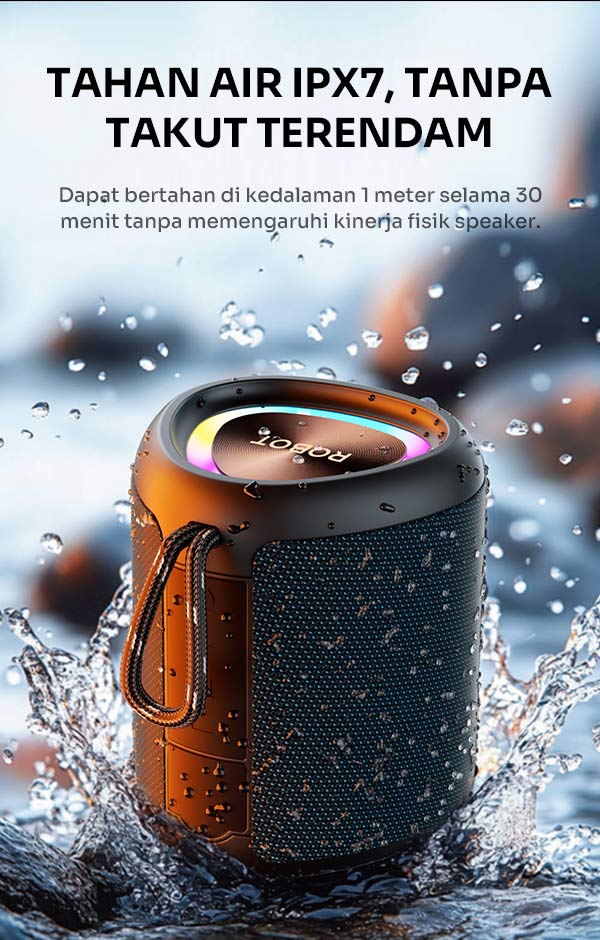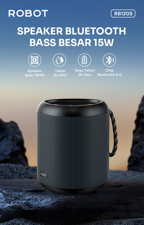 Rp 106.000- ROBOT RB180 Bluetooth Speaker dengan RGB Lightshow dinamis, menghadirkan efek cahaya atraktif untuk suasana lebih hidup.