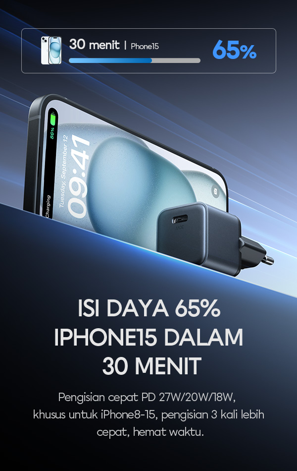 - Mendukung Power Delivery (PD) dan Quick Charge 3.0 untuk berbagai smartphone iPhone dan Android.