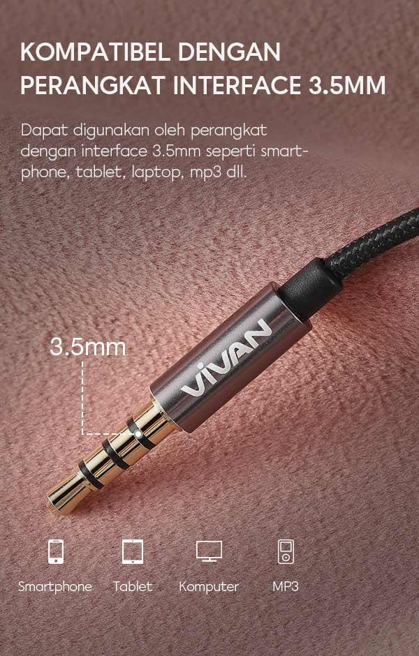 - Kompatibel dengan perangkat berport 3.5mm seperti smartphone, tablet, laptop, dan MP3 player.