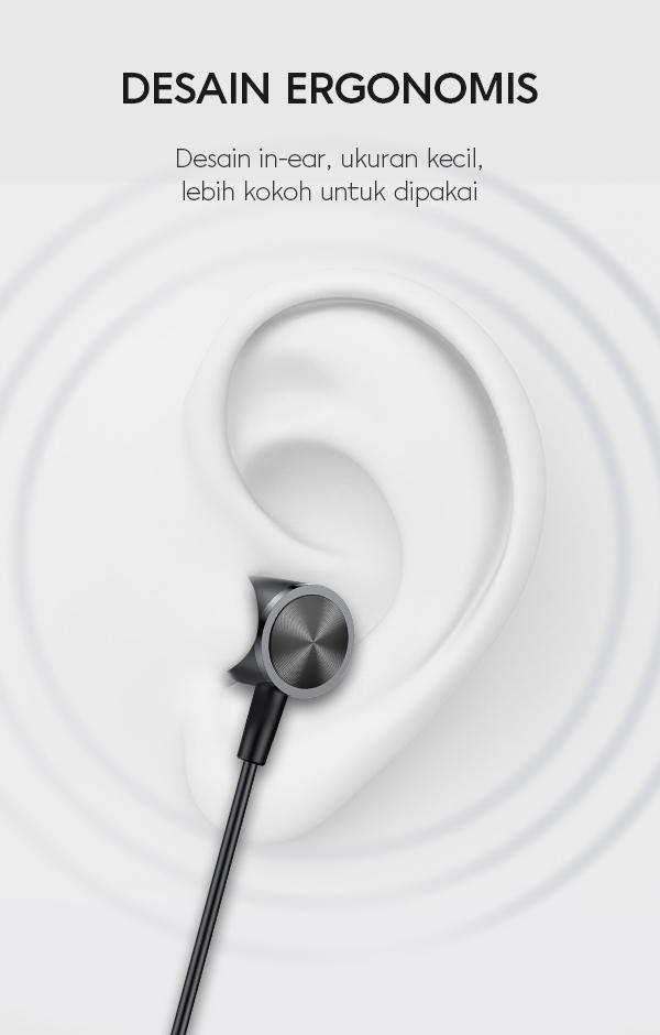 - Desain ringkas dan ergonomis half in-ear, nyaman dipakai lama tanpa rasa sakit.