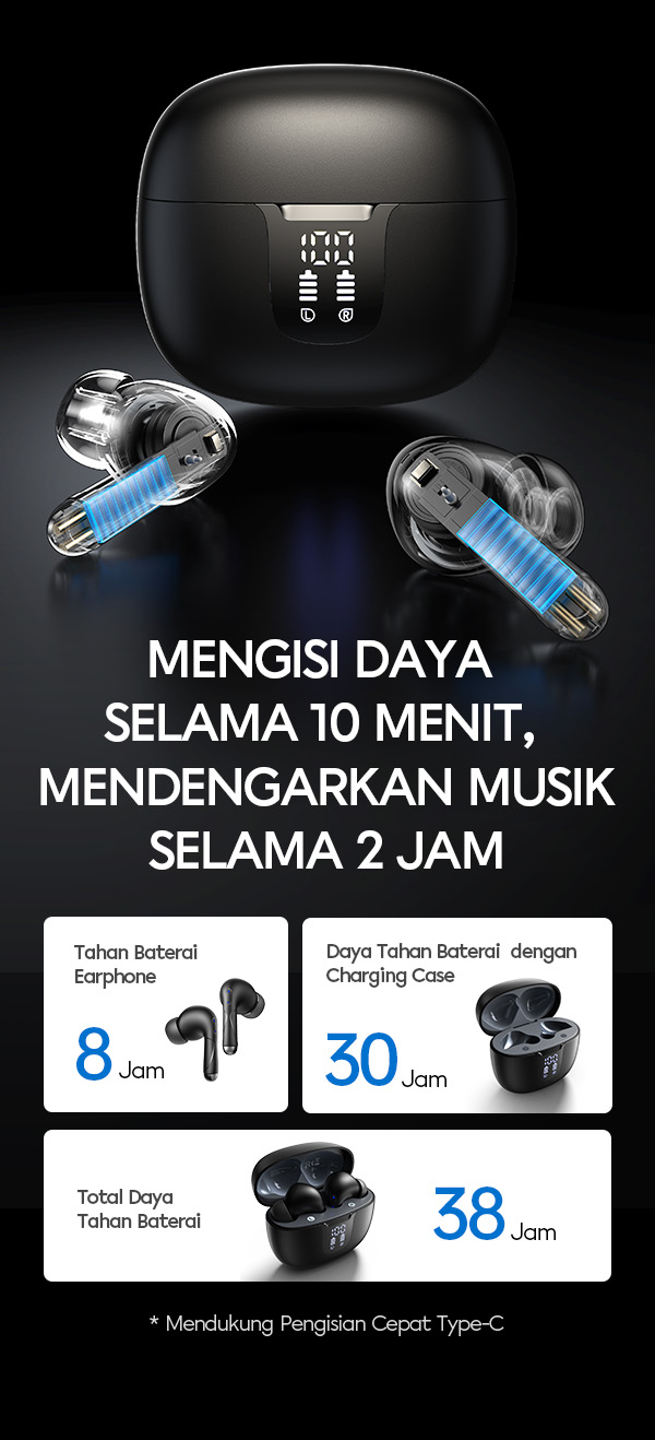 - Daya tahan baterai hingga 36 jam, mendukung hiburan nonstop sepanjang hari.