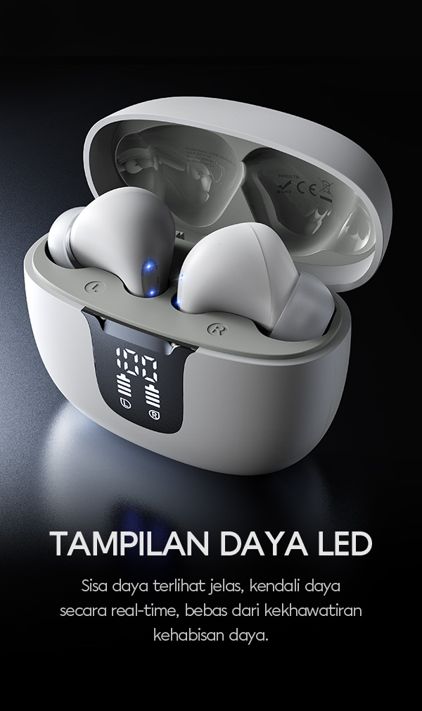 - Daya tahan baterai panjang dengan charging case, memungkinkan pemakaian berjam-jam tanpa sering mengisi ulang.