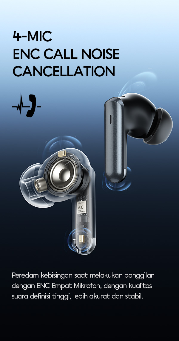 - Sistem 4-Mic ENC (Environmental Noise Cancellation) menghasilkan suara jernih saat panggilan, bebas bising, dan lebih stabil.