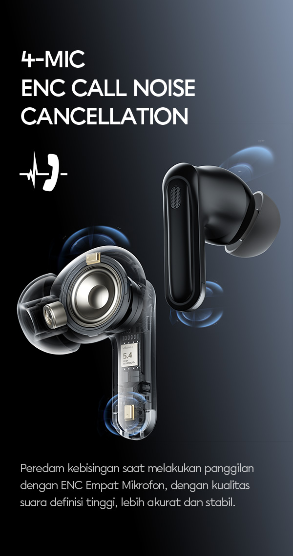 - Sistem 4-Mic ENC (Environmental Noise Cancellation) menghasilkan suara jernih saat panggilan, bebas bising, dan lebih stabil.