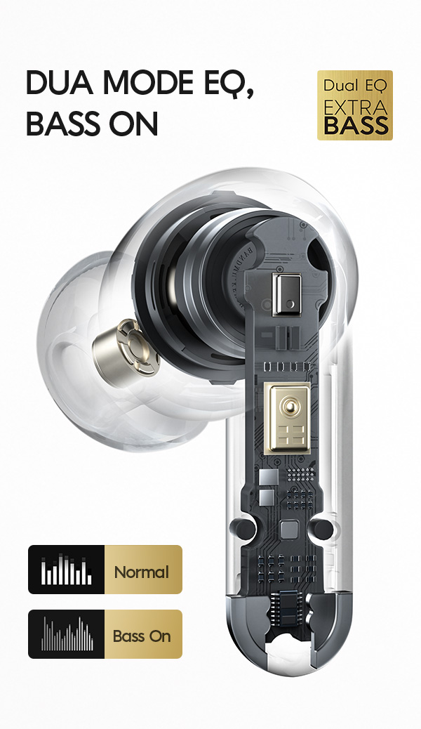 Dual EQ Extra Bass. Suara jernih, bass mantap, serta