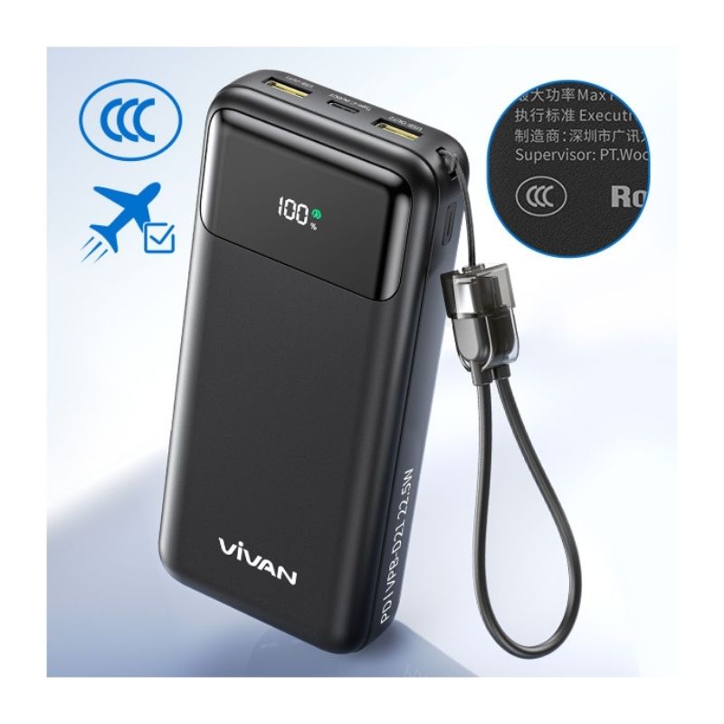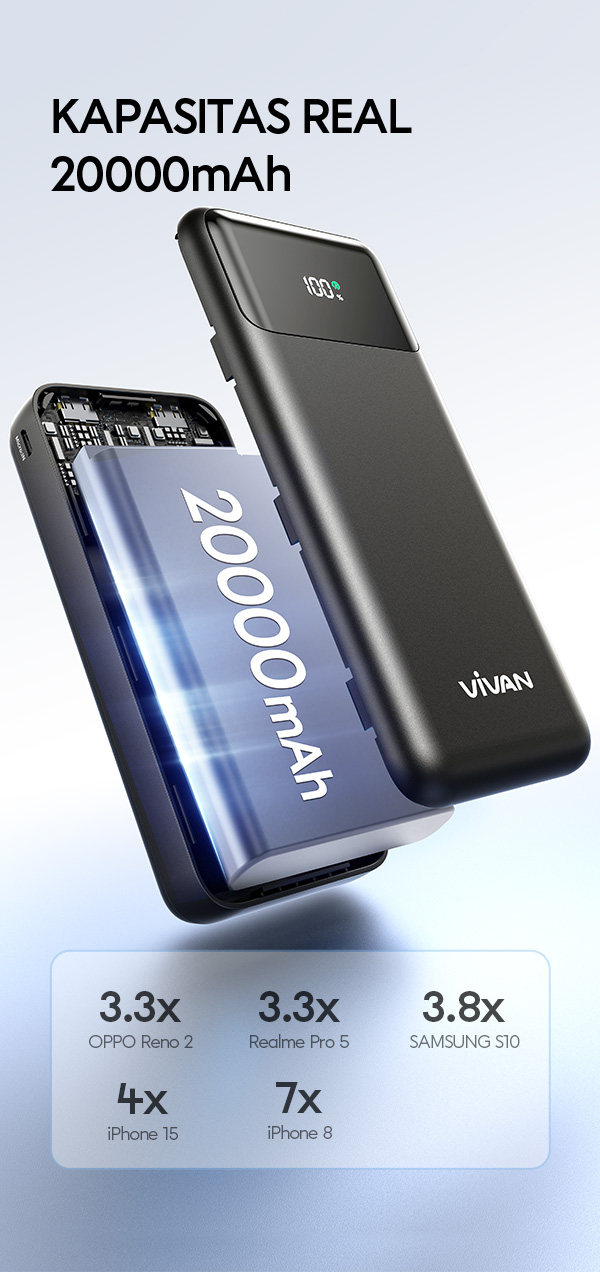 - VIVAN Power bank kapasitas 20.000 mAh.