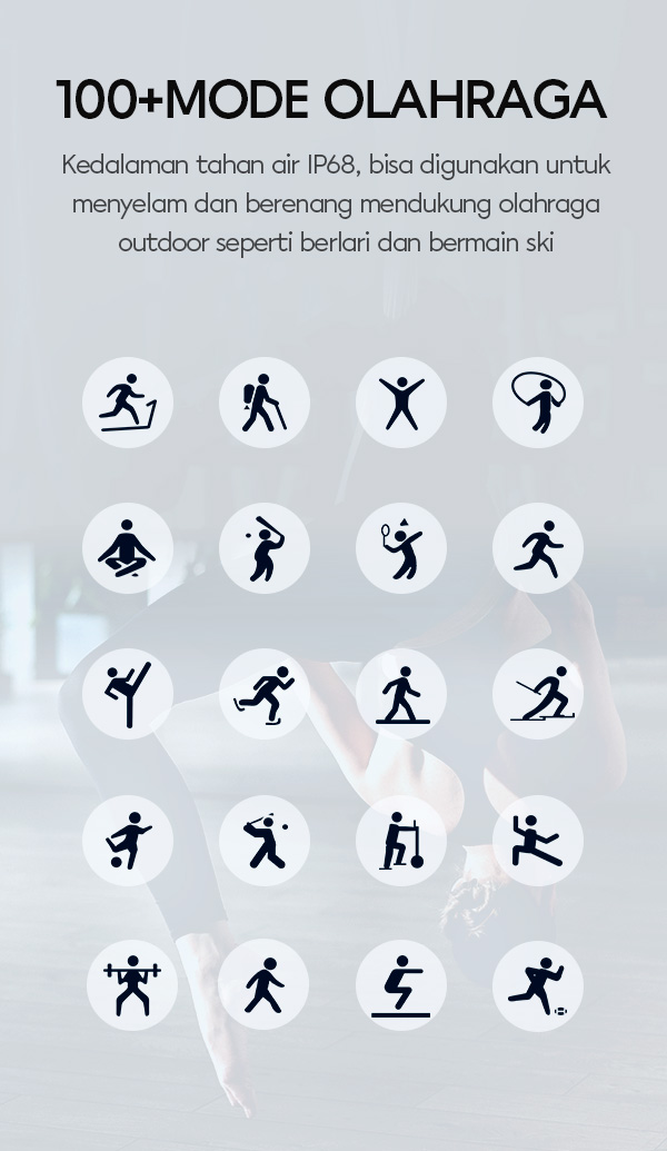 - Mendukung berbagai mode olahraga untuk membantu memantau aktivitas fitness dan gaya hidup sehat.