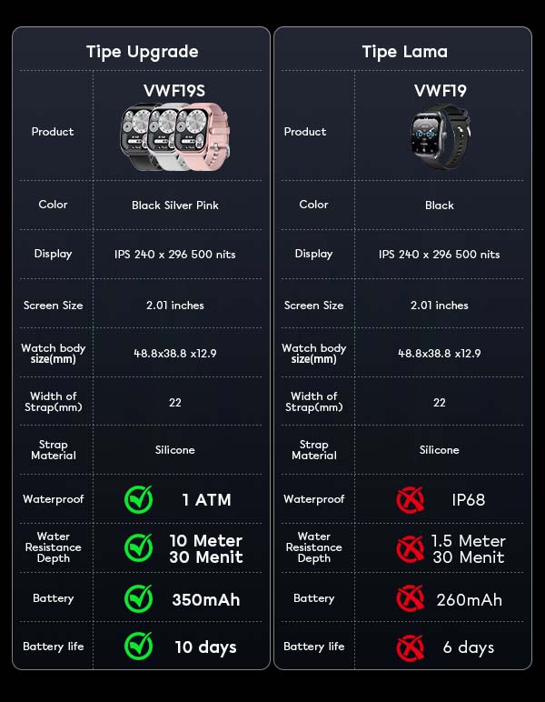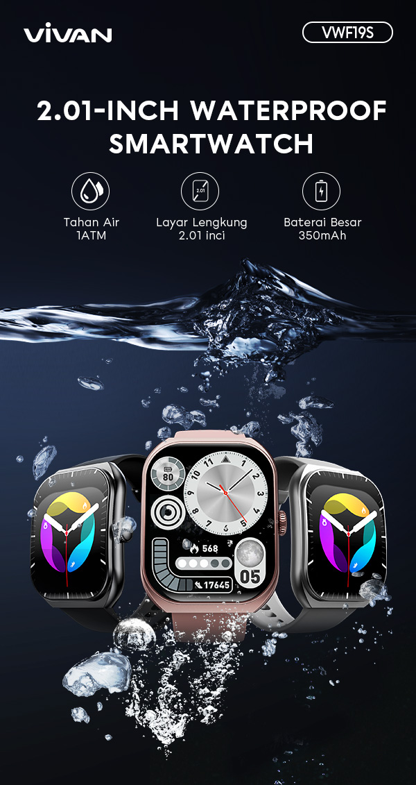 - Smart Watch VIVAN VWF19s dengan layar IPS 2.01 inci yang luas dan jernih, memberikan tampilan notifikasi dan menu lebih nyaman dibaca.