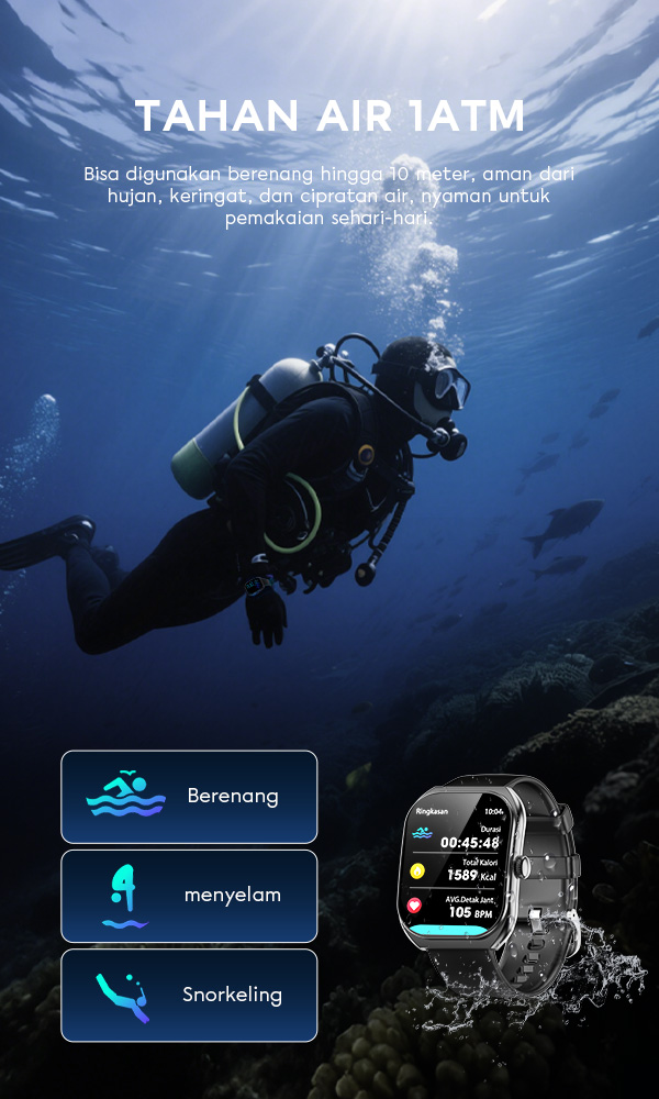 - Tahan air untuk penggunaan harian dan olahraga ringan tanpa khawatir percikan air.
