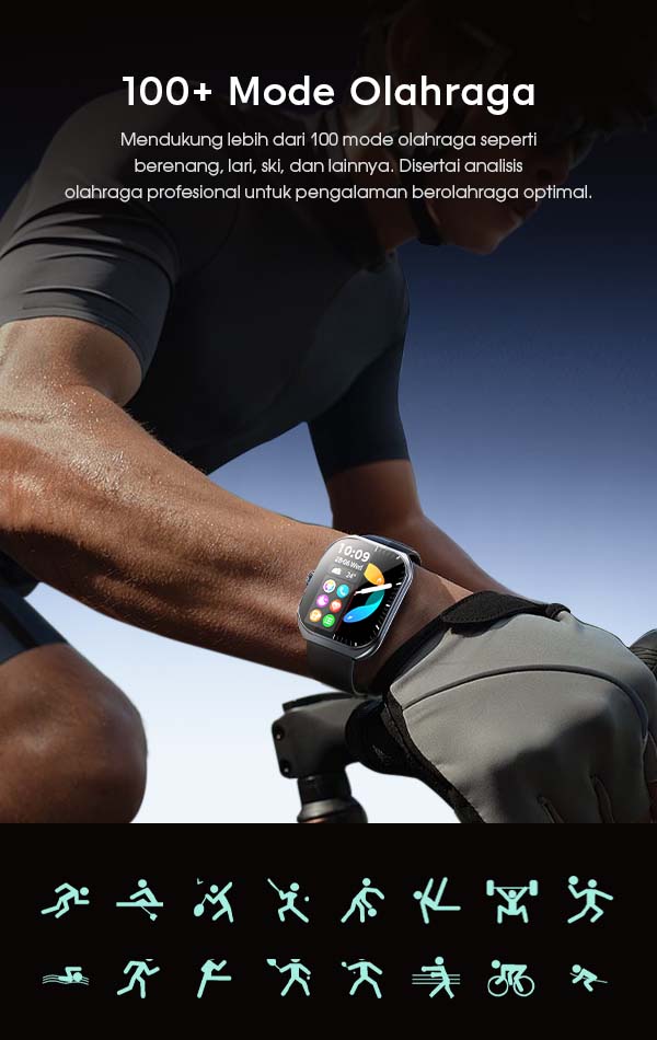 - Mendukung berbagai mode olahraga untuk memantau performa aktivitas Anda.
