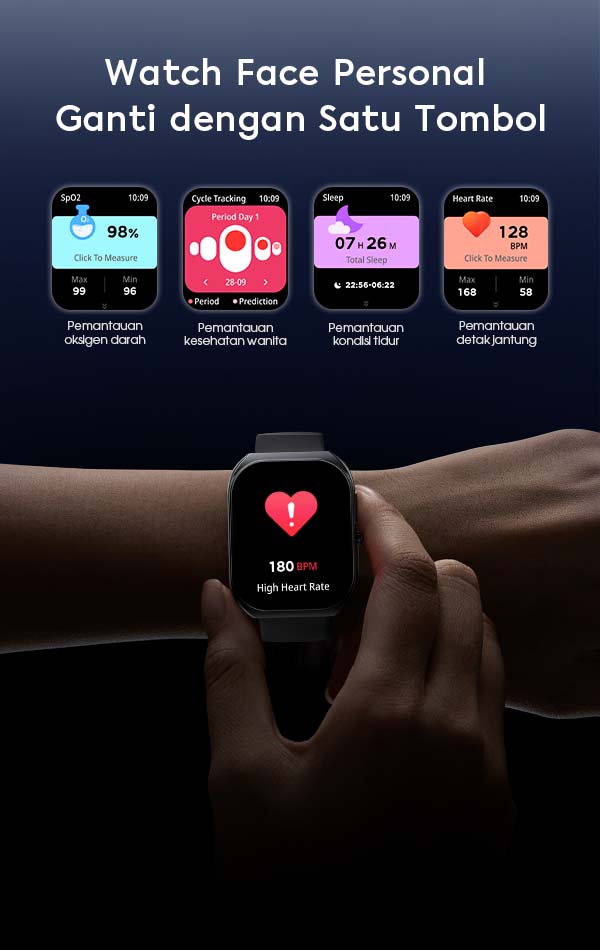 - Mendukung berbagai fitur pemantauan kesehatan seperti detak jantung, pemantauan tidur, dan aktivitas harian.