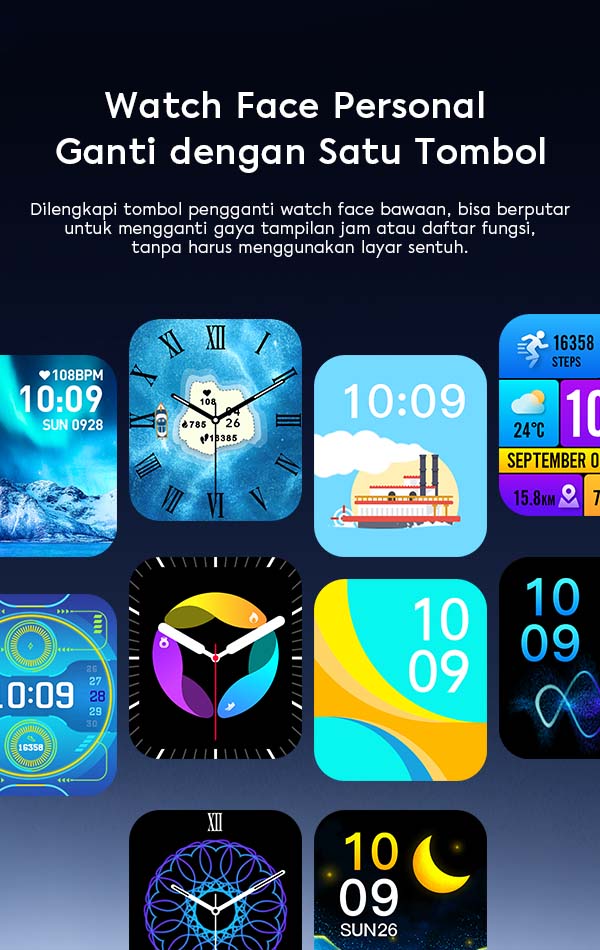 - Mendukung berbagai mode olahraga untuk membantu memantau aktivitas fitness dan gaya hidup sehat.