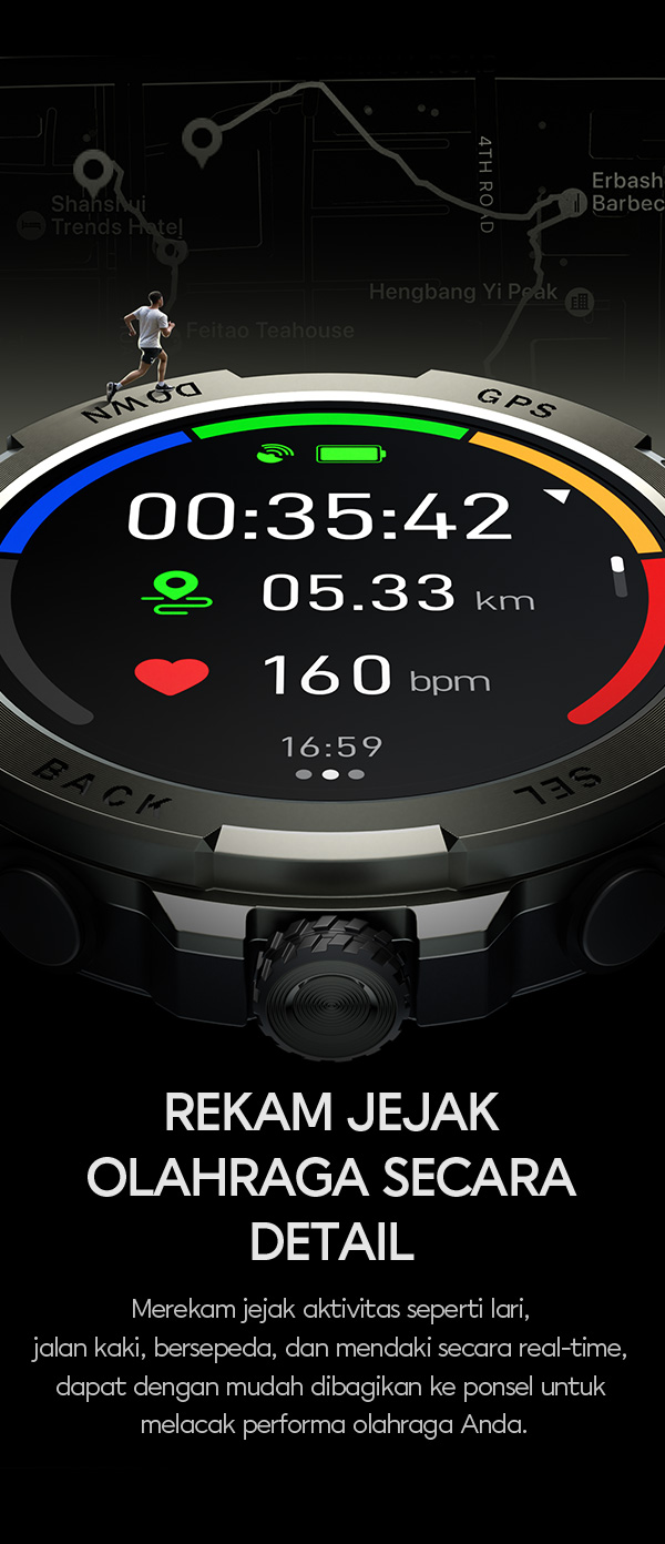 - Dilengkapi fitur GPS built-in, akurat untuk tracking lari, bersepeda, dan berbagai aktivitas outdoor tanpa perlu membawa smartphone.