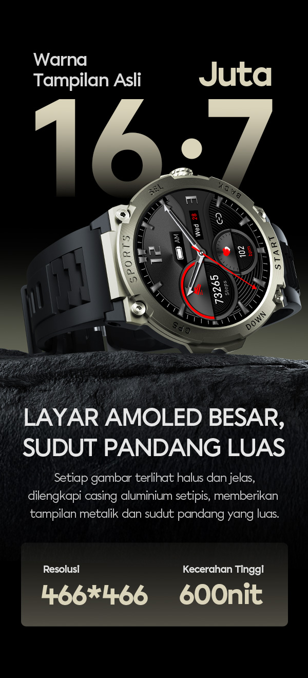 - Mendukung berbagai mode olahraga untuk memantau performa aktivitas Anda.
