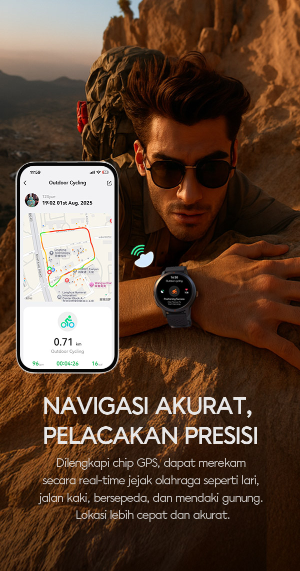 - Dilengkapi fitur GPS built-in, akurat untuk tracking lari, bersepeda, dan berbagai aktivitas outdoor tanpa perlu membawa smartphone.
