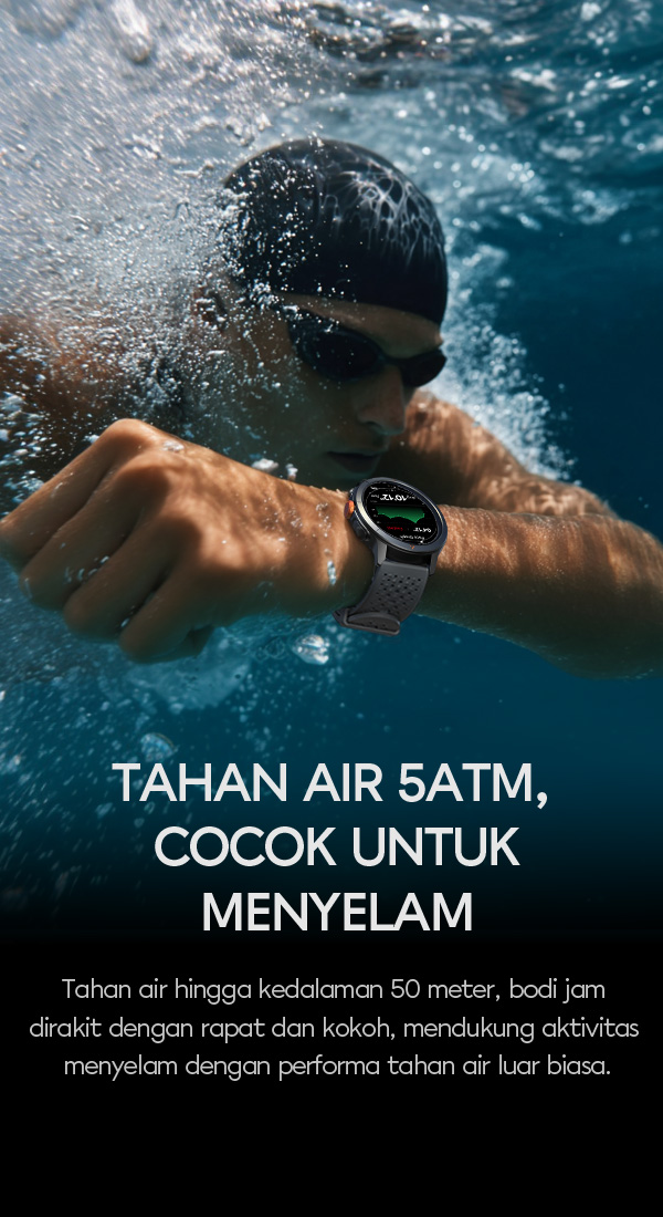 - Tahan air hingga 5ATM, aman digunakan untuk berenang, olahraga outdoor, dan aktivitas harian tanpa khawatir air.