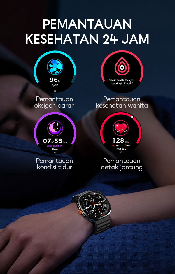 - Fitur pemantauan kesehatan seperti detak jantung, langkah kaki, kalori, dan kualitas tidur untuk gaya hidup lebih aktif.