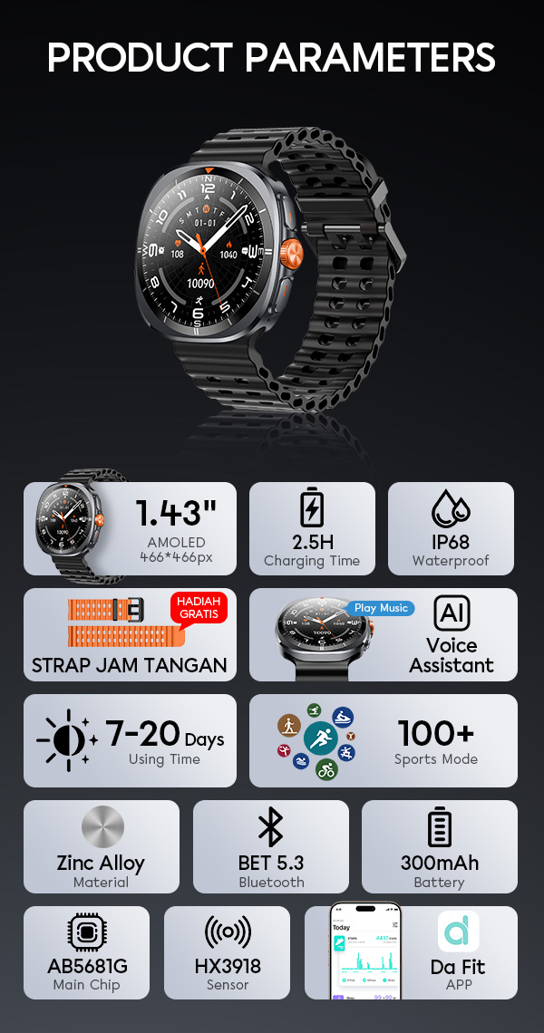 - Sertifikasi IP68 tahan air dan debu, aman digunakan saat aktivitas sehari-hari maupun olahraga.