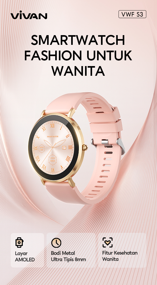 - Smart Watch VIVAN VWY S3 dengan layar AMOLED 1.32 inci yang tajam, warna lebih hidup, dan kontras tinggi untuk tampilan premium.