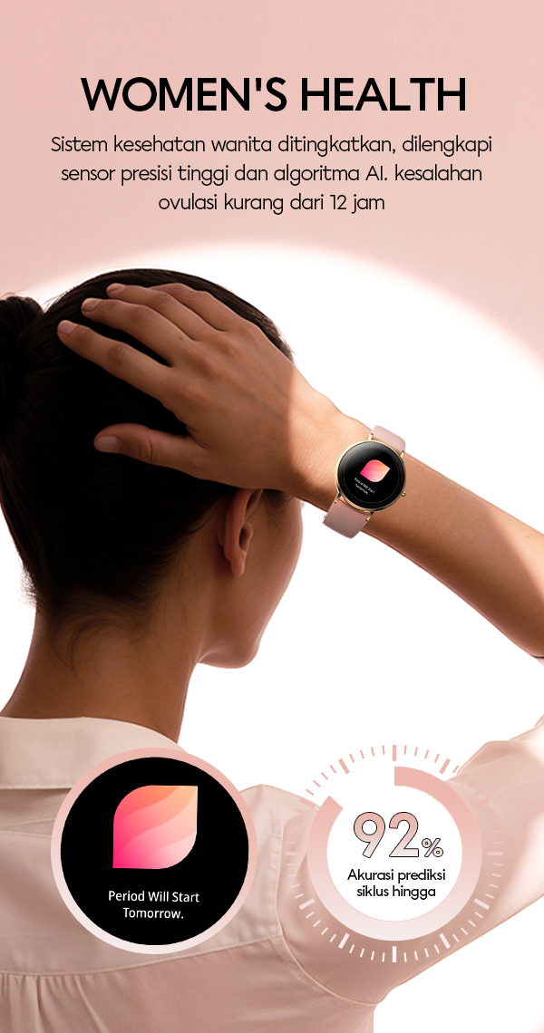- Mendukung berbagai mode olahraga untuk membantu memantau aktivitas fitness dan gaya hidup sehat.