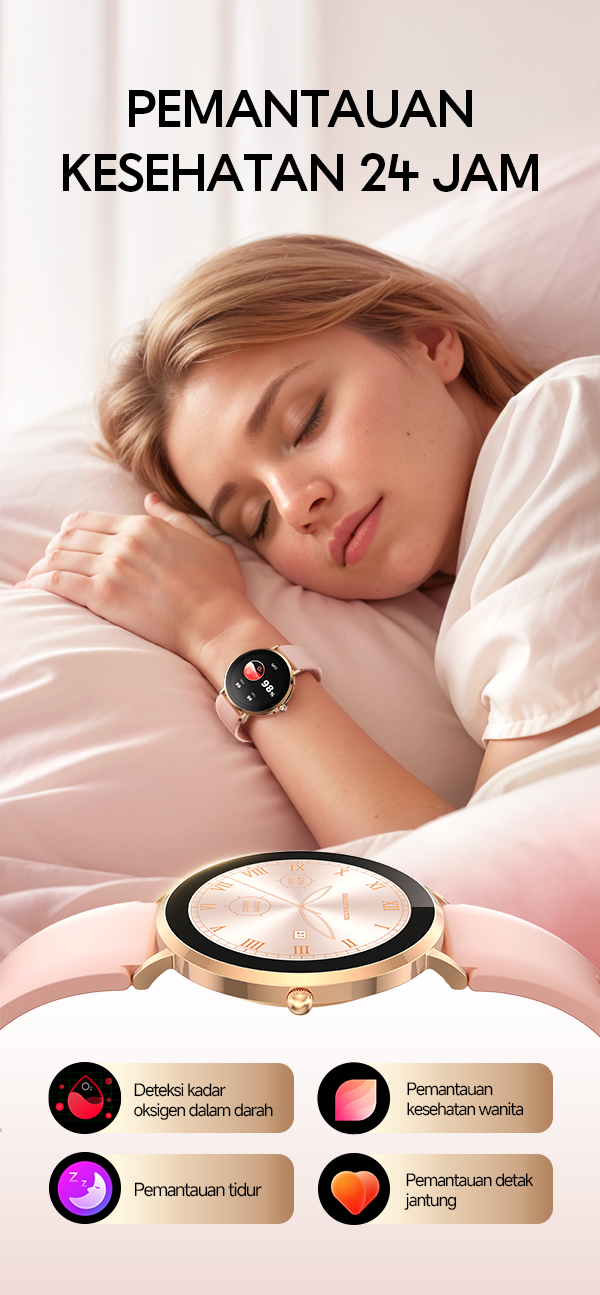 - Fitur pemantauan kesehatan seperti detak jantung, langkah kaki, kalori, dan kualitas tidur untuk gaya hidup lebih aktif.