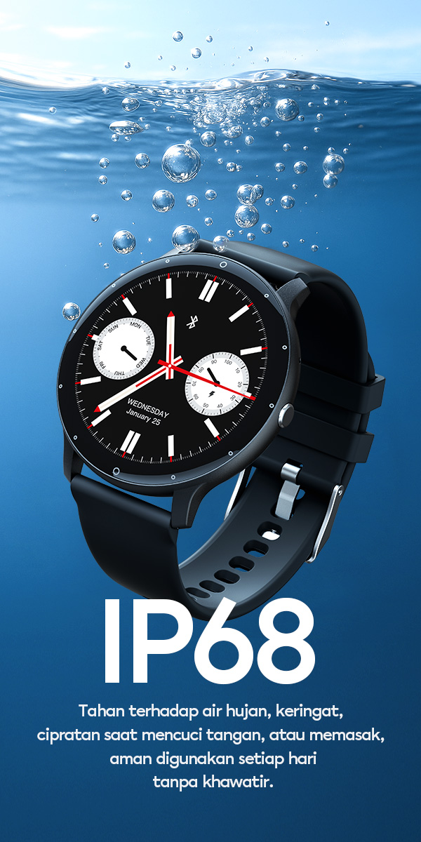 - Tahan air untuk penggunaan harian dan olahraga ringan tanpa khawatir percikan air.