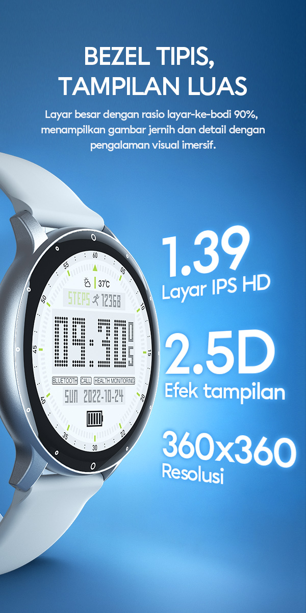 - Fitur pemantauan kesehatan seperti detak jantung, langkah kaki, kalori, dan kualitas tidur.