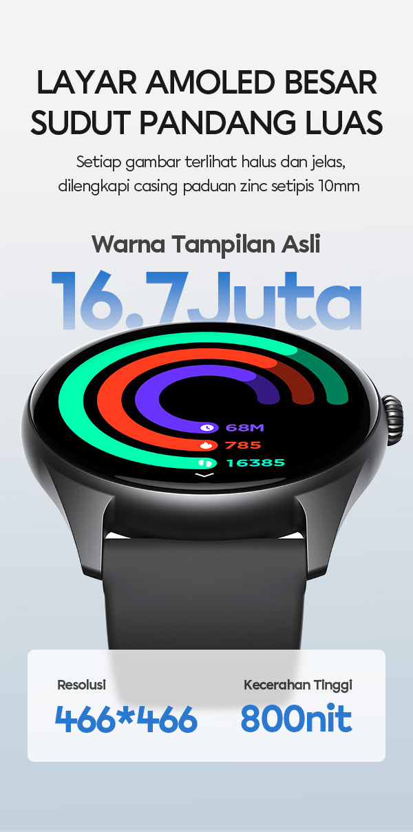 Rp 1.060.500- VIVAN Smart Watch VWY G2 dengan layar AMOLED 1.6 inci yang tajam, warna lebih hidup, dan visibilitas optimal di berbagai kondisi cahaya.