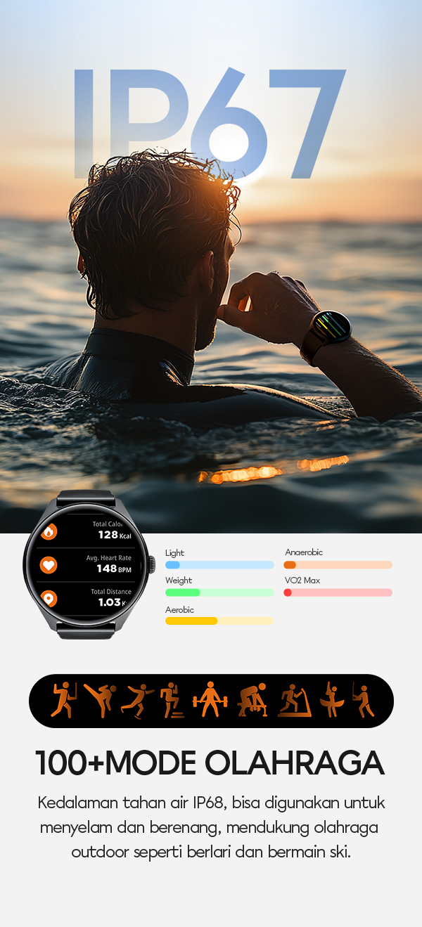 - Sertifikasi IP68 tahan air dan debu, aman digunakan untuk aktivitas olahraga dan penggunaan sehari-hari.