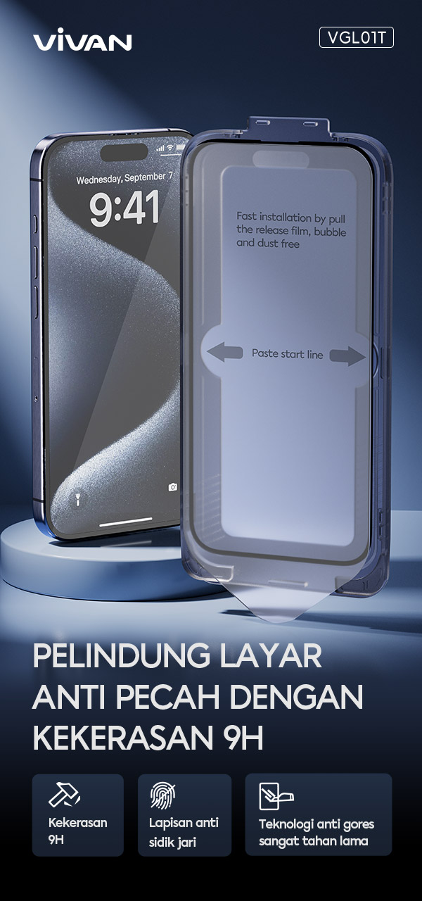Rp 55.000- Tempered Glass VIVAN VGL01T HD dirancang khusus untuk iPhone 13 Pro Max dan iPhone 14 Plus dengan ukuran presisi mengikuti bentuk layar.