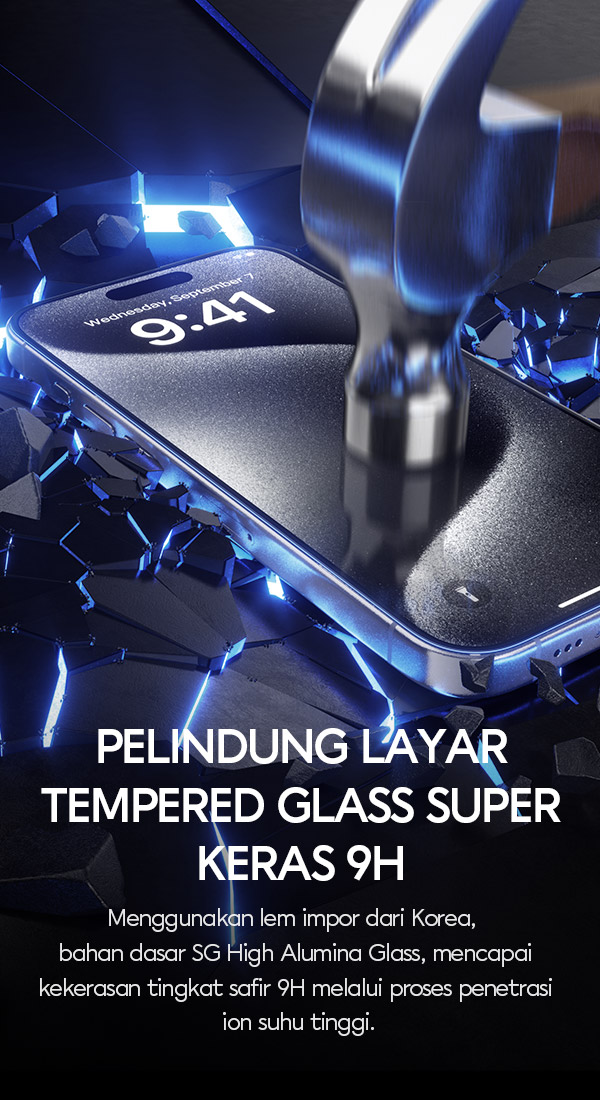 - Menggunakan material tempered glass berkualitas tinggi untuk melindungi layar dari goresan, benturan ringan, dan debu.