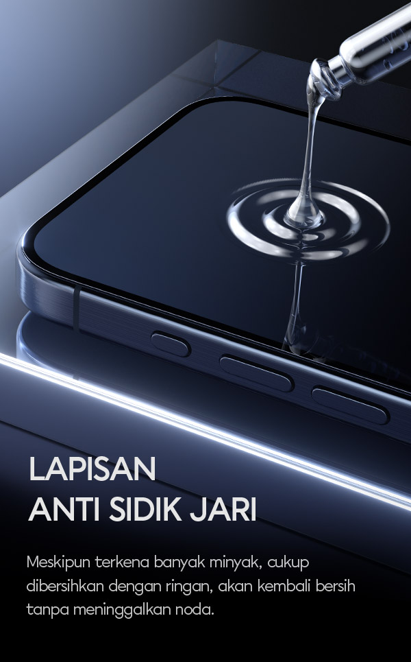 - Lapisan anti sidik jari dan anti debu menjaga layar tetap bersih dan nyaman saat digunakan setiap waktu.
